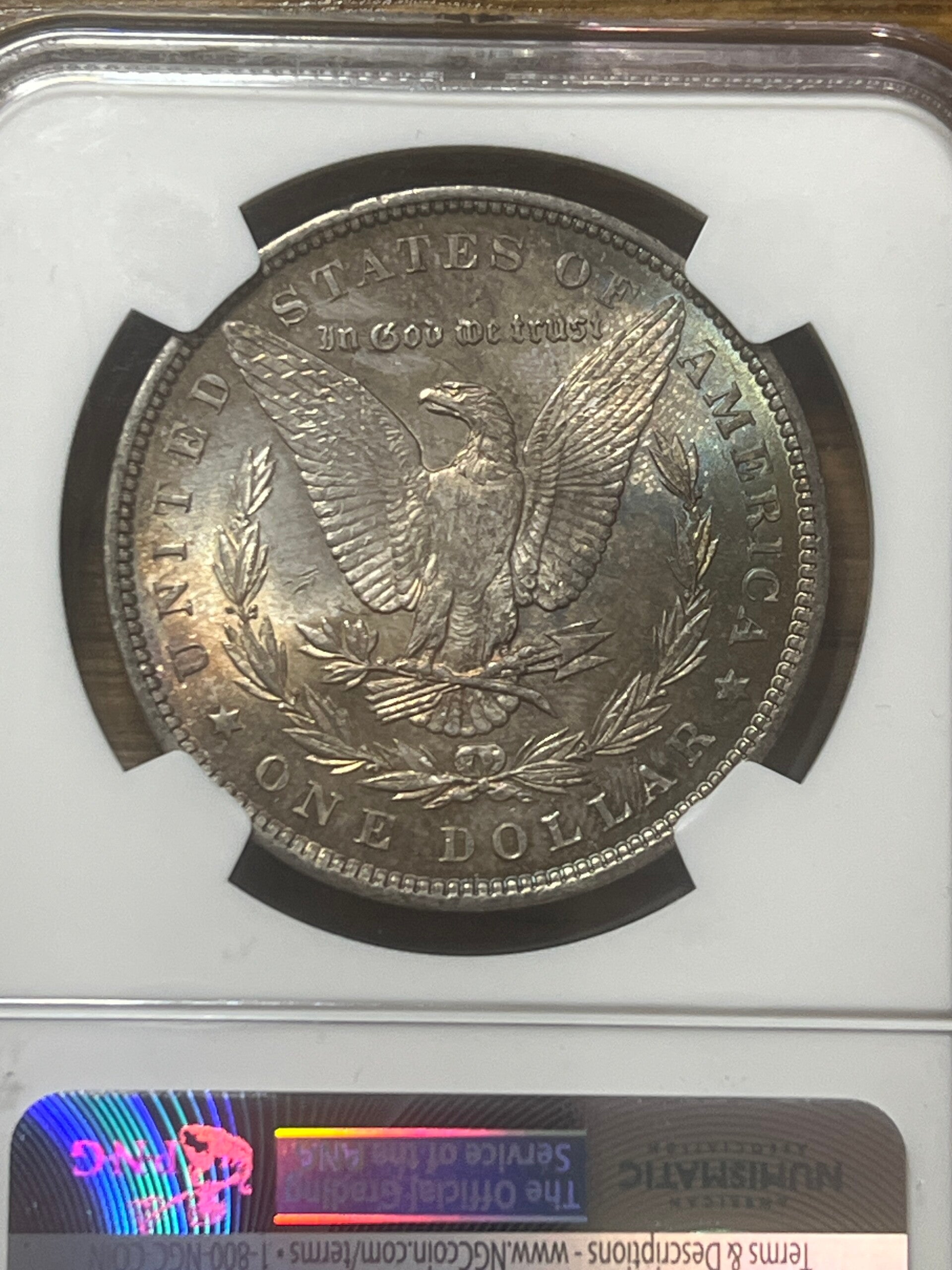 very nice coin. Pretty blue and purple toning on reverse side